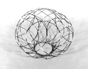 В результате стержень приобретает форму кольца (тривиального узла), и его конструктивная стабильность зависит от отношения диаметра самого кольца к диаметру образующего его стержня. Если диаметр кольца слишком велик по отношению к диаметру стержня, чтобы его внутренняя энергия упругости могла противостоять действию сил скручивания изогнутого стержня, то кольцо превращается в двойную вложенную петлю с одной перекрещивающейся точкой (Рис. 4b).