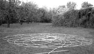 Эксперименты, проведённые автором с различными видами точечных моделей плоскости, подтвердили, что узлы и зацепления колец и узлов являются наиболее естественной формой самоорганизации и структуризации одномерно протяжённых упруго-эластичных объектов. Следствием этого факта является то, что естественной формой объединения системы независимых точечных контактов, заданных цилиндрическими соприкасающимися телами, является объединение их между собой связной топологической структурой, выполненной в виде циклического или периодического узла [8]. Упруго-эластичный стержень, длина которого на 2‑3 порядка превышает его диаметр, образует элементарную структуру, когда его концы соединяются между собой (Рис. 4a).