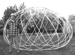 Топологическая сущность NODUS-структур, как конструктивных основ изменяемых точечных поверхностей, позволяет экстраполировать формообразующие возможности их моделей на конструкции больших размеров [12]. Уверенность в возможности такой экстраполяции подтверждается как рядом экспериментов, проведённых автором (Рис. 10(a–c)), так и изучением опыта Р. Б. Фуллера, чьи геометрические структуры одинаково работоспособны, начиная от молекулярного уровня и заканчивая гигантскими куполами‑оболочками пролётом в сотни метров.