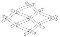 В противоположность виртуальному методу, физическая модель точки представляет собой контакт или касание поверхностей реальных физических тел в реальном пространстве. Такие точечные контакты образуют, например, два касающихся твёрдых шара или два цилиндра с непараллельными осями вращения. Множество таких точечных контактов может рассматриваться как прототип физической модели, но построение реально функционирующей модели точечной поверхности обусловлено двумя существенными факторами. Во-первых, множество точечных контактов должно быть топологически связным, чтобы образованная ими модель поверхности была континуальной. Во-вторых, структура, связывающая между собой точечные контакты, должна допускать возможность их относительно независимого перемещения друг относительно друга. В частности, хорошей аппроксимацией фрагмента точечной поверхности может служить ткань из переплетённых упруго-эластичных стержней, наподобие поверхности корзины из свежих прутьев (Рис. 3), в которой присутствует множество точечных контактов между цилиндрическими телами.