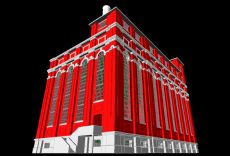 Fig.2.(a-d). CAD I: Geometric Modeling and visualization. Central Tejo, Lisboa (Eduardo Costa, 2001/02): from the 2d to the photorealistic model.