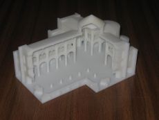 Fig. 3(a-h): CAD II: programming and fabrication. Program for generating Romanesque churches (Ricardo Mesquita, 2003/04): from the digital model to the 3d physical model produced by FDM