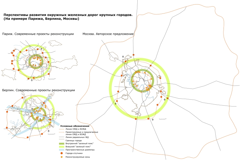 Рис. 8. Перспективы развития ОЖД крупных городов (на примере Парижа, Берлина, Москвы) |