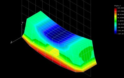 В настоящее время изучение работы конструкций перешло из сферы эмпирических наблюдений в сферу целого ряда серьезных научных дисциплин – сопротивления материалов, статики, теоретической механики и т.д. Однако абстрактные научные модели и теоретические расчеты оказались для архитекторов настолько сложными, что о какой-либо связи конструкций с художественным образом пока остается только мечтать. Почти во всех исследованиях по тектонике подчеркивается, что поскольку тектоника образно выражает работу скрытых в материале и конструкции сил, архитектор должен очень хорошо разбираться в особенностях работы этих сил. Однако, для того, чтобы архитектору достичь более-менее приличного уровня в конструировании, ему фактически необходимо получить еще одно образование – конструкторское, что на сегодняшний день представляется практически невероятным. Кроме того, хорошее знание работы конструкций еще не является гарантией того, что архитектор сумеет найти выразительные тектонических образы. Поэтому, актуальной следует признать задачу по существенной корректировке учебных программ архитектурно-дизайнерских школ. При этом, сегодня развитие конструкторского образования архитектора может быть достигнуто не за счет количественного увеличения академических часов, а за счет повышения качества содержания специальных конструкторских дисциплин, в первую очередь, посредством повышения наглядности изучаемого материала. Отличную основу для решения этой задачи могут дать появившиеся в последнее время новые программные продукты по расчету конструкций. Мы предполагаем, что адаптация этих продуктов к специфическим особенностям архитектурно-художественного проектирования позволит студентам-архитекторам более качественно осваивать конструкторские дисциплины. Такие новейшие продукты как COSMOS/M, SolidWorks, SCADoffis и др., позволяют современному проектировщику наглядно изучить, как работает и деформируется конструкция в тех или иных условиях (Рис. 3(a-e)).