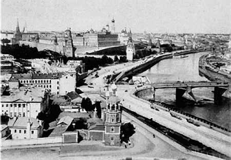Рис.2(a,b): a) вид на колокольню Ивана Великого с Москворецкой набережной (ХIХ век); b) вид на Спасскую башню от Мавзолея ( ХХ век)