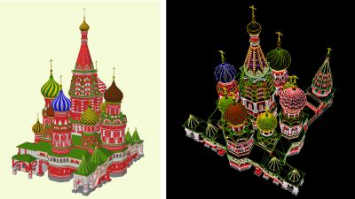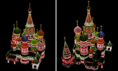 Благодаря своим почти «экстремальным» характеристикам, модель Храма Василия Блаженного стала хорошей основой для постоянно ведущихся опытов и отработки новых методик и технологий компьютерного макетирова