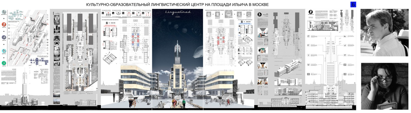 Кафедра «Архитектура общественных зданий» МАРХИ как самостоятельное подразделение имеет свою историю. Кабинет «Архитектура жилых и общественных зданий» был создан под руководством Веснина Л.А. в 1930 г. при Архитектурно-строительном университете, а с 1946 года потребность в развитии направления архитектуры общественных зданий положила начало деятельности кафедры как самостоятельного подразделения в ее нынешнем статусе. Под руководством Рыльского И.В. С 1950г. руководство кафедрой осуществляли последовательно Парусников М.П., Соболев И.Н., затем с 1973 по 1983 гг. проф. Рожин И.Е., с 1993 по 2004 гг. – проф. Плишкин В.А. С 2005 г. кафедрой руководил проф. Ауров В.В., скончавшийся в 2023 году. На кафедре работала плеяда выдающихся архитекторов: Бархин Б.Г., Бархин Г.Б., Бархин М.Г., Великанов А.П., Захаров Г.А., Ламцов И.В., Сатунц С.Х., Колли Н.Я., Марковников Н.В., Поляков Н.Х., Власов А.В., Красильников В.Д., Мельчаков И.Д., Барщ М.О., Голосов И.А., Ладовский Н.А., Новикова Е.Б., Савицкий Ю.Ю., Чернышев С.Е., Локтев В.И., Щеглов А.В., Матвеенко А.И., Киселёв В.В., Шульрихтер В.А., Петунина З.В. Методика работы всегда была нацелена на то, чтобы научить студентов языку пластических форм, законам формо- и цветообразования, принципам построения пространственной композиции, методам создания жизнеспособного здания, призванного приносить пользу долгие годы и соответствовать требованиям эстетики пространства. Кафедра обучает архитектурному проектированию, готовит бакалавров и магистров по направлению «Архитектура», а также соискателей ученых степеней и аспирантов. Педагогическая система кафедры поддерживает традиции подготовки архитекторов как художников-конструкторов, способных создавать гармоничную и созвучную времени искусственную комфортную среду. Начиная с 3 курса обучения, с момента прихода на кафедру для поддержания культуры ручной графики и навыков макетирования в группах кафедры «Архитектуры общественных зданий» регулярно проводятся клаузуры и выполняются блиц-проекты. Проектируются все типы современных общественных зданий и общественных пространств, таких как театры, концертные залы, клубы, общественно-деловые центры, транспортно-пересадочные узлы. Коллективом кафедры, совместно со специалистами смежных подразделений, ведутся исследования по междисциплинарным тематикам: реновация исторических культурных и промышленных сооружений с целью обеспечения города пространствами общественного назначения, создание гастрономических кварталов, арт-кластеров и др. Педагоги кафедры ведут работу над исследованиями по таким современным и актуальным тематикам, как проектирование высотных зданий, в том числе, смешанного функционального назначения, устойчивая архитектура, проектирование зданий с использованием медиа и BIM-технологий. Темы дипломных проектов и магистерских диссертаций выбираются студентами по согласованию с руководителями из числа наиболее актуальных и «острых» для современного общества. Особенное внимание уделяется темам, соответствующим приоритетным направлениям науки в текущий период в Российской Федерации. Дипломный проект культурно-образовательного лингвистического центра на площади Ильича в Москве. 2016 г. Авторы Тамбовцева К.О, Парамонов П.А. Руководители Баушева М.Д., Карелин Д.А., Лозинский И.З.